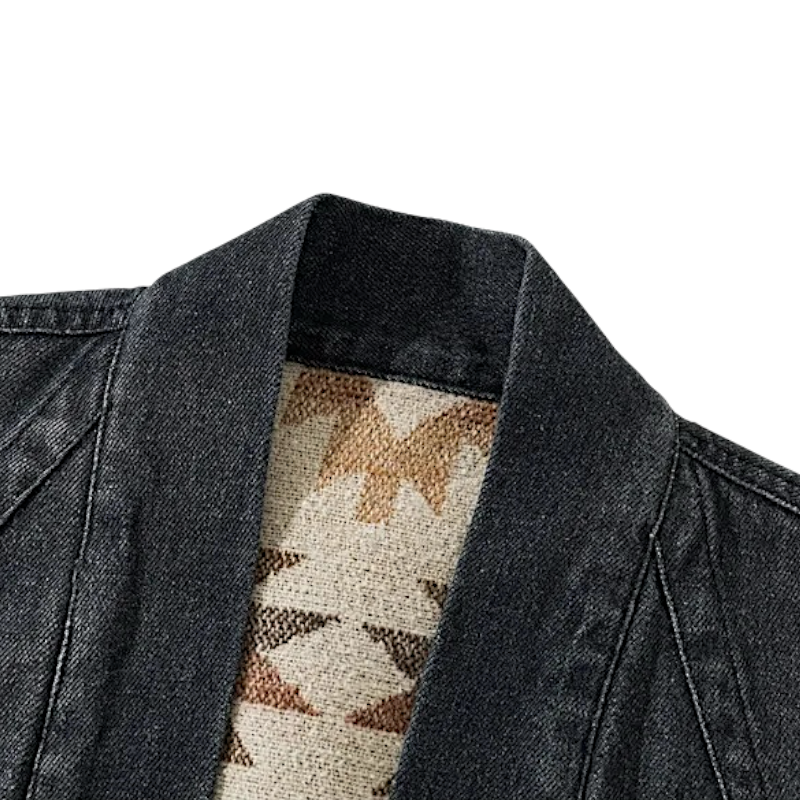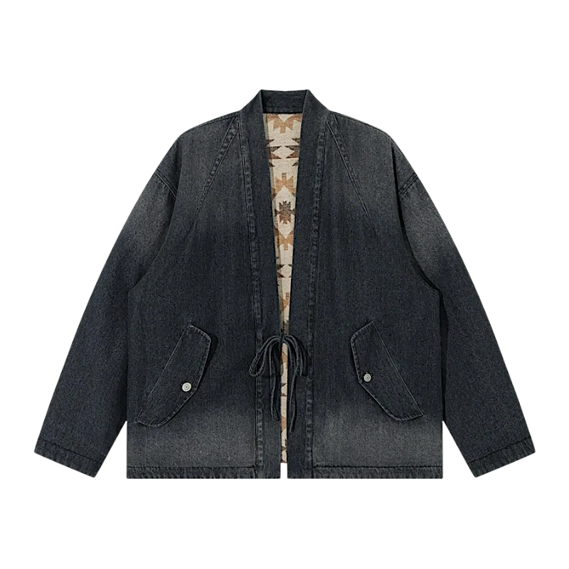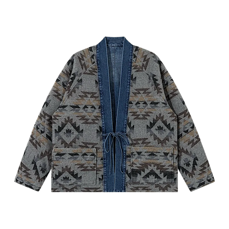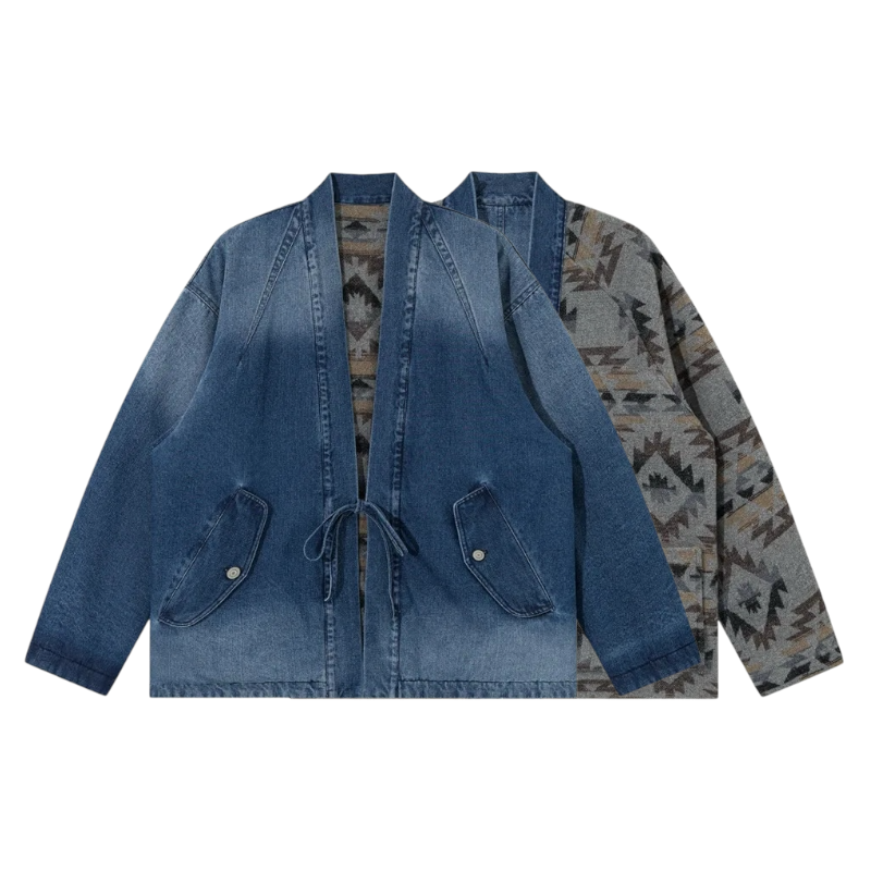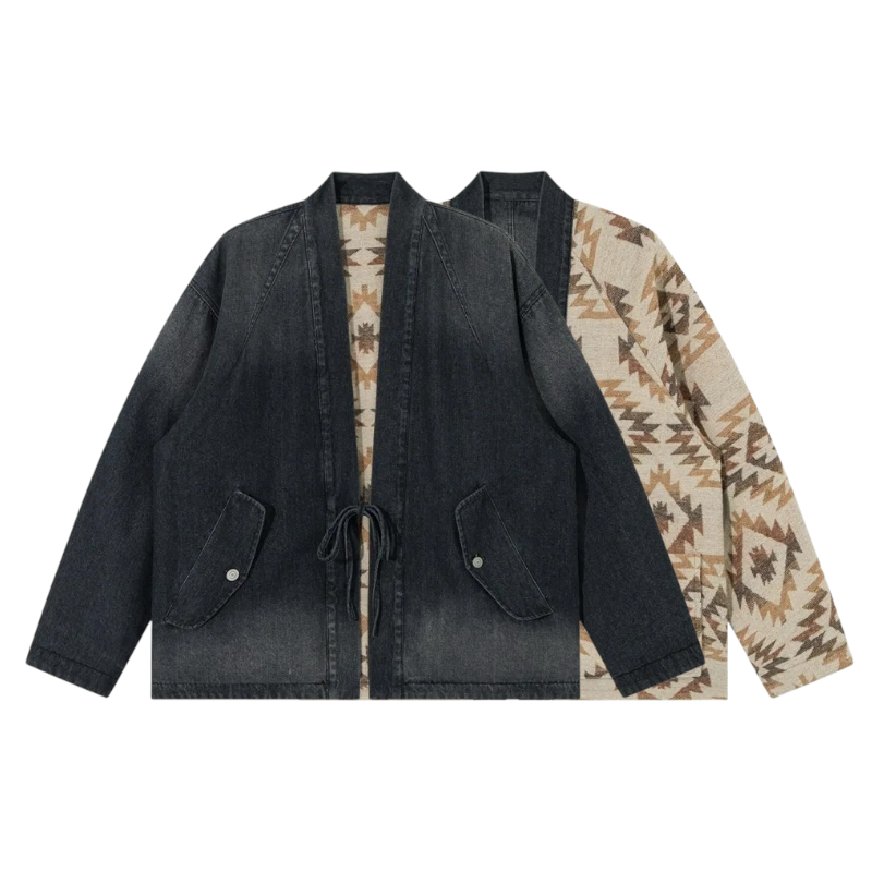 Reversible denim navajo pattern kimono jacket