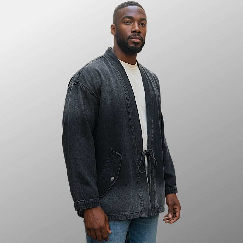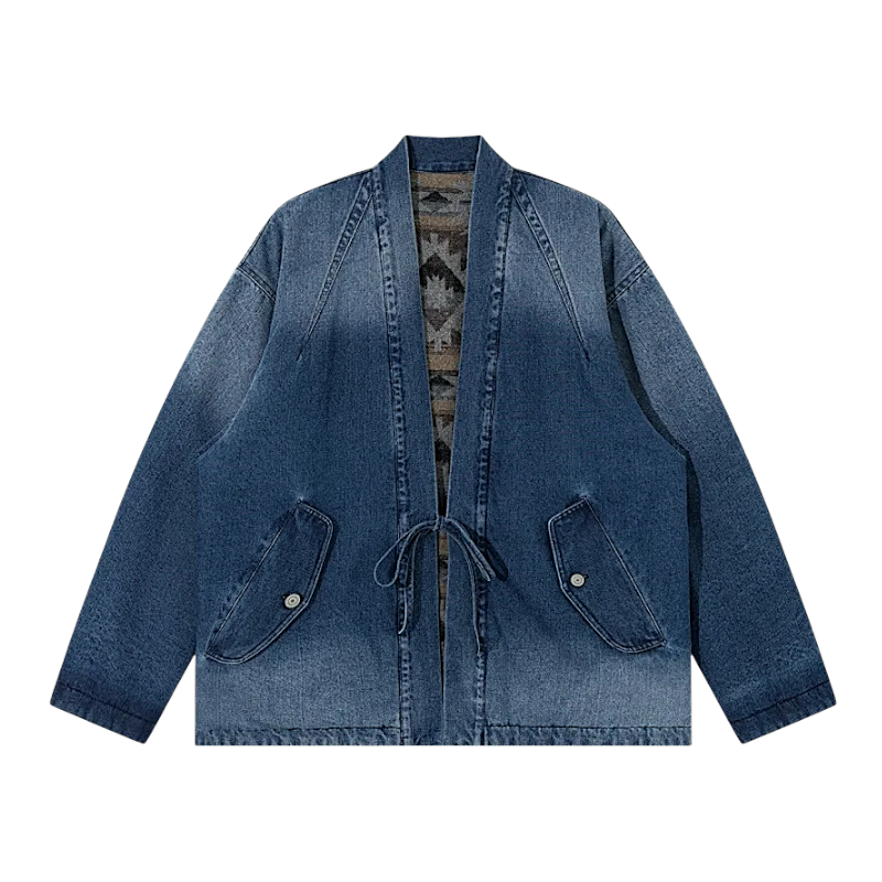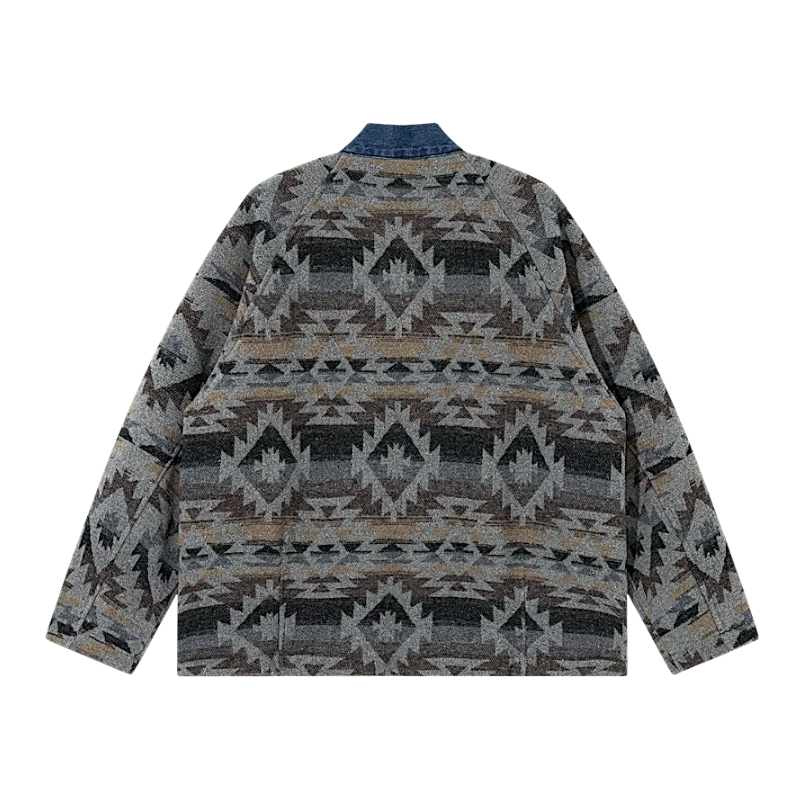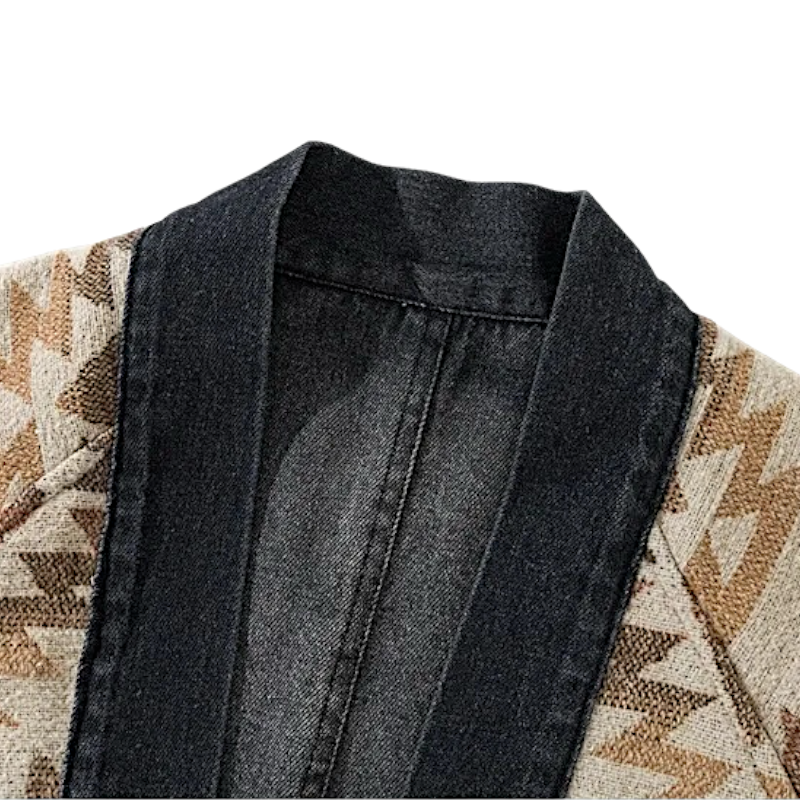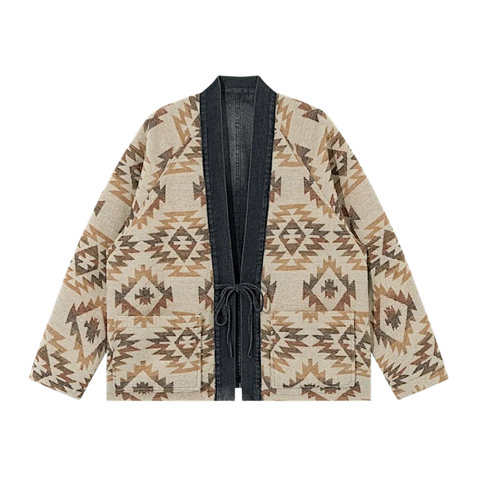 Reversible denim navajo pattern kimono jacket