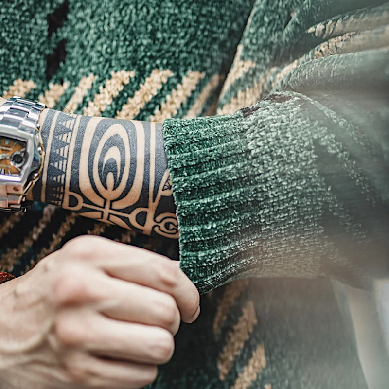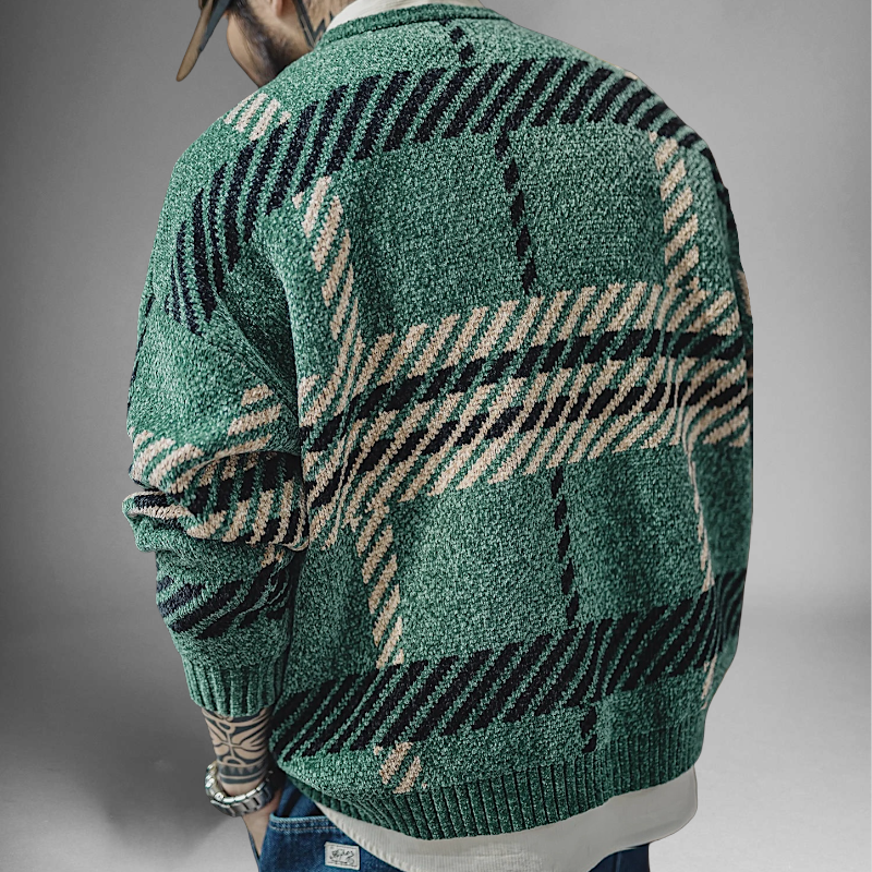 - Intarsia pattern of oversized plaid
