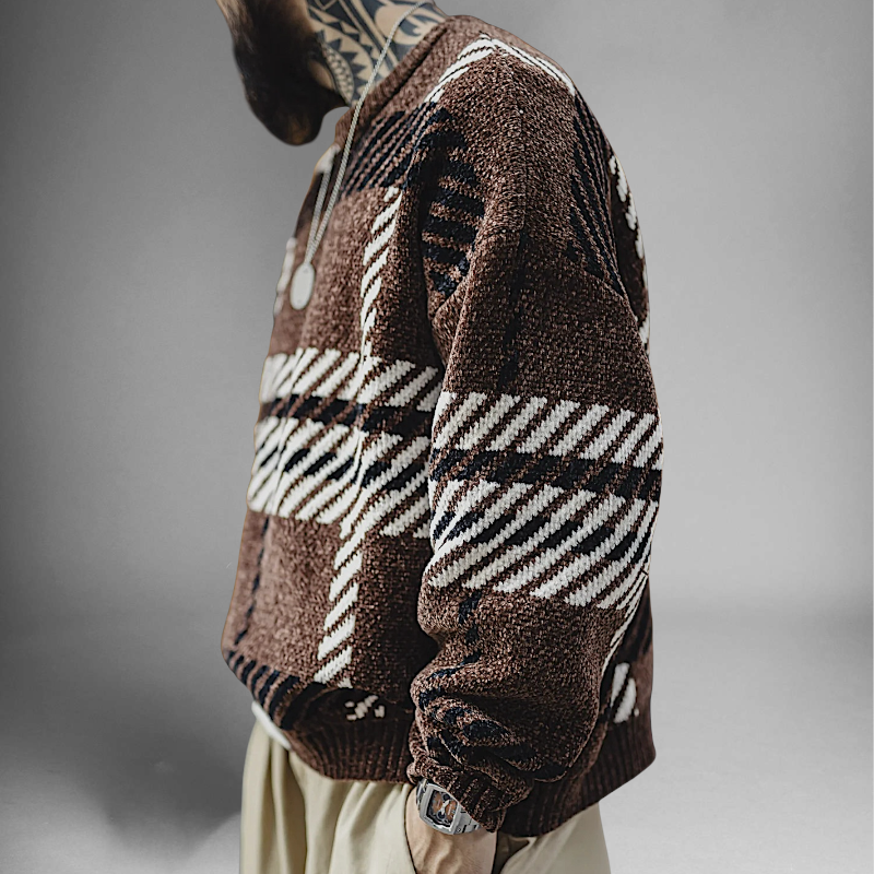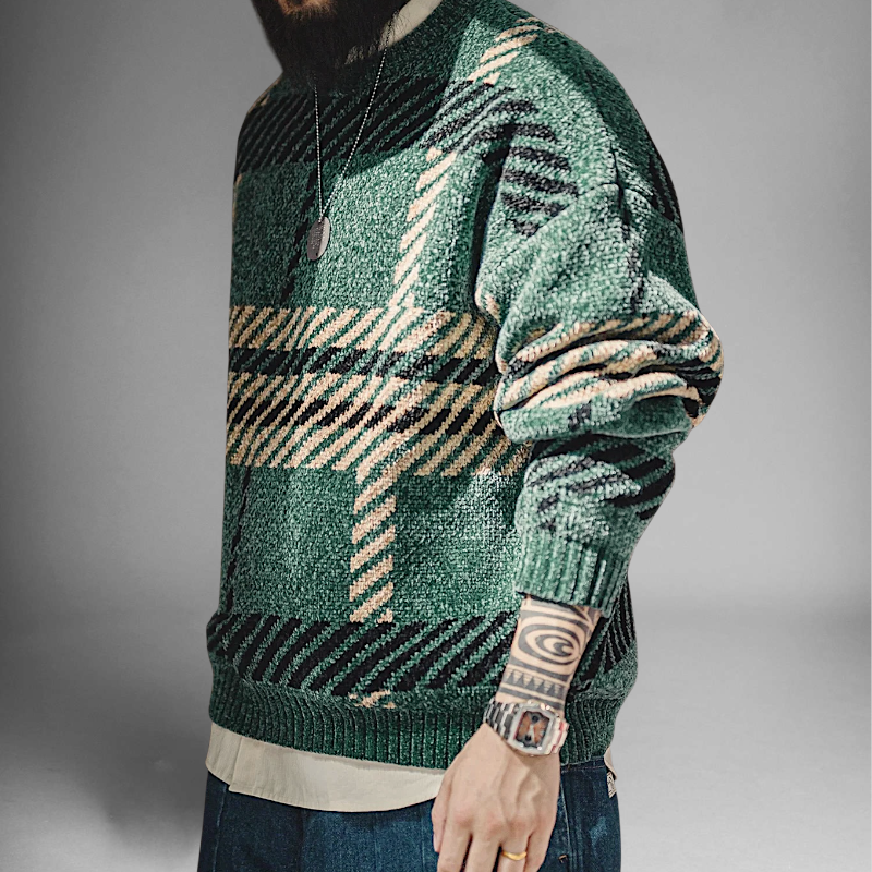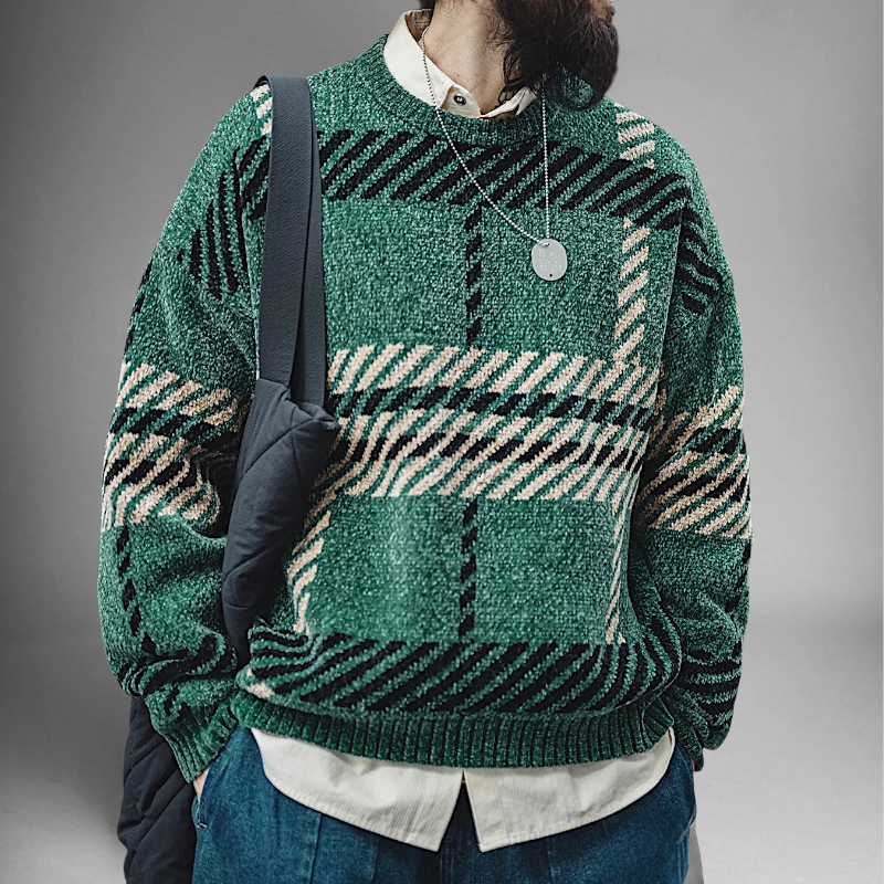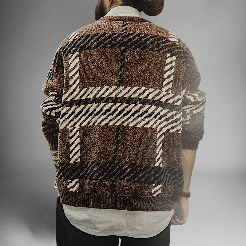 Large plaid chenille sweater