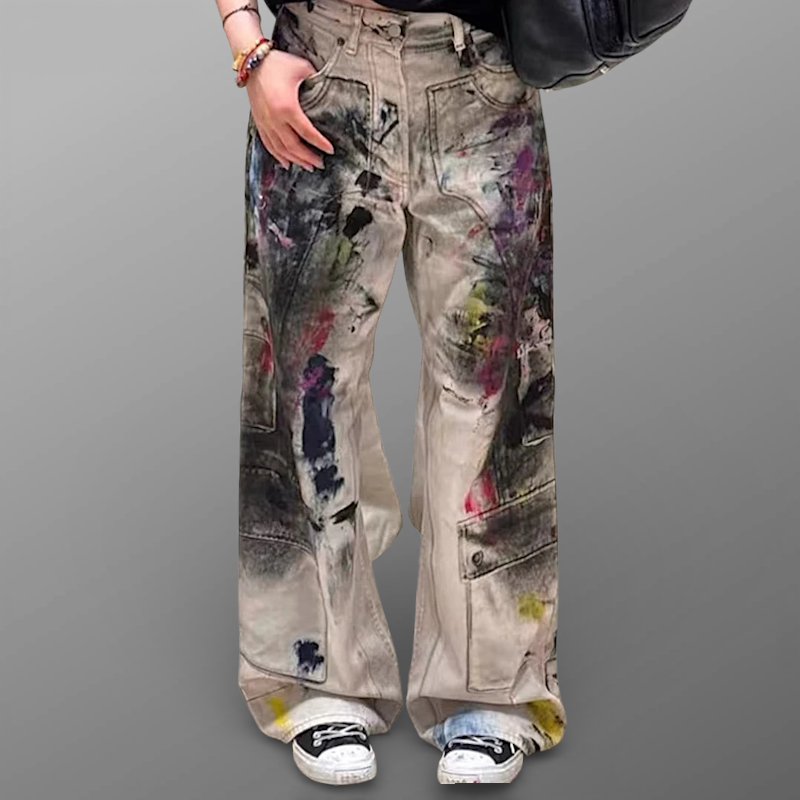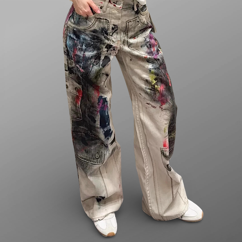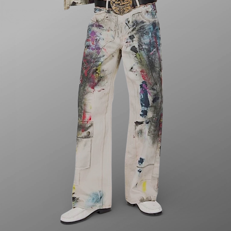 Ink splash print carpenter jean
