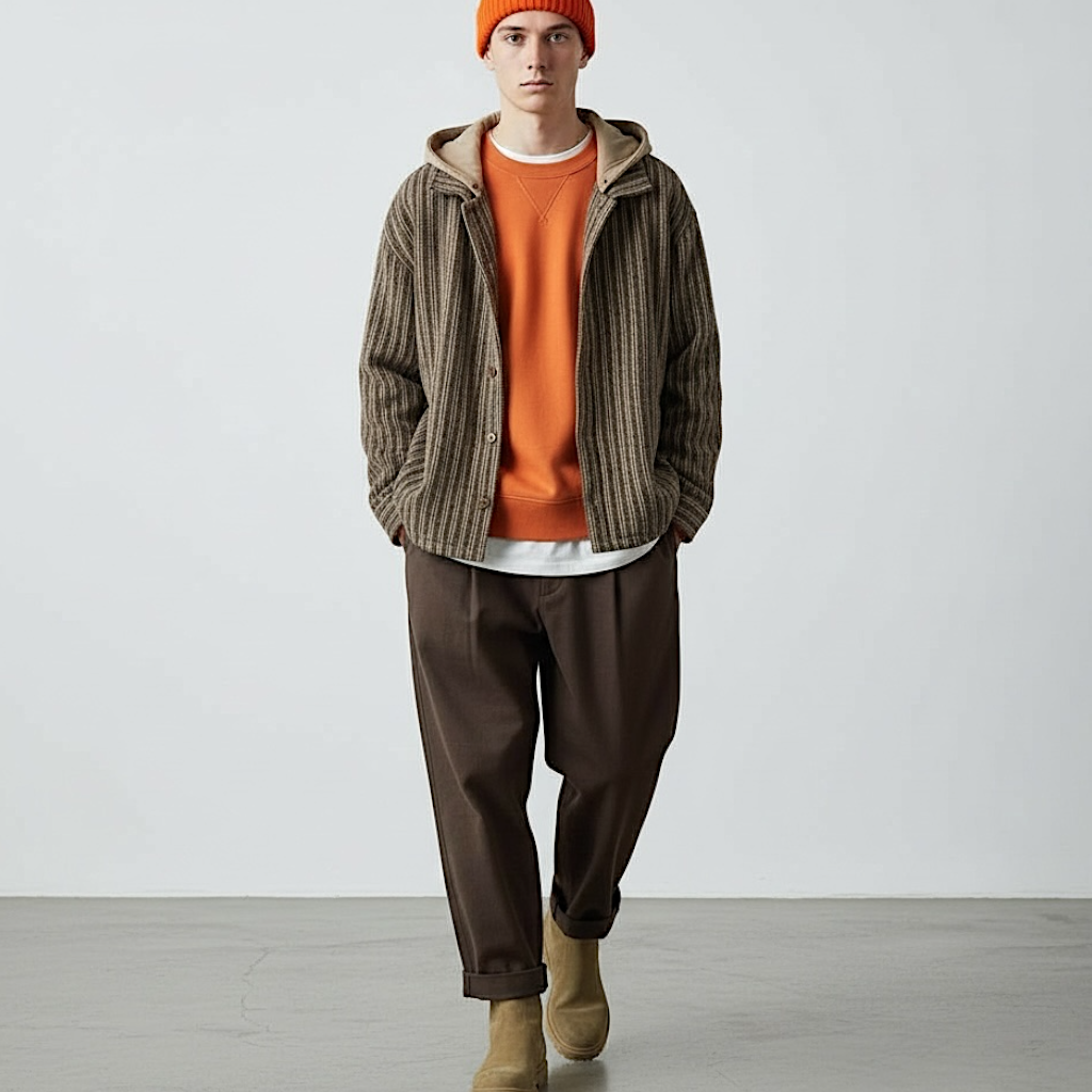 Striped woolen carcoat with quilted liner
