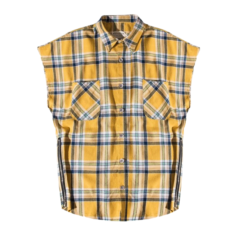 Oversized sleeveless plaid shirt with side zips - Final Sale