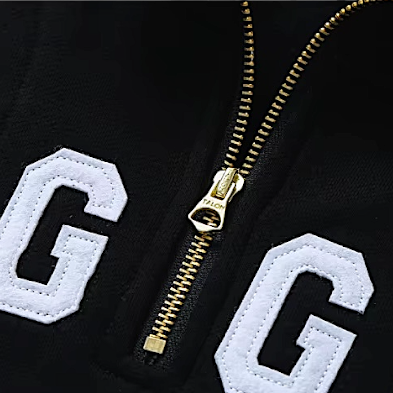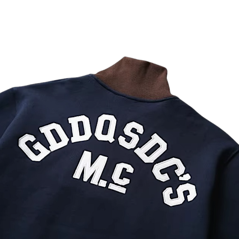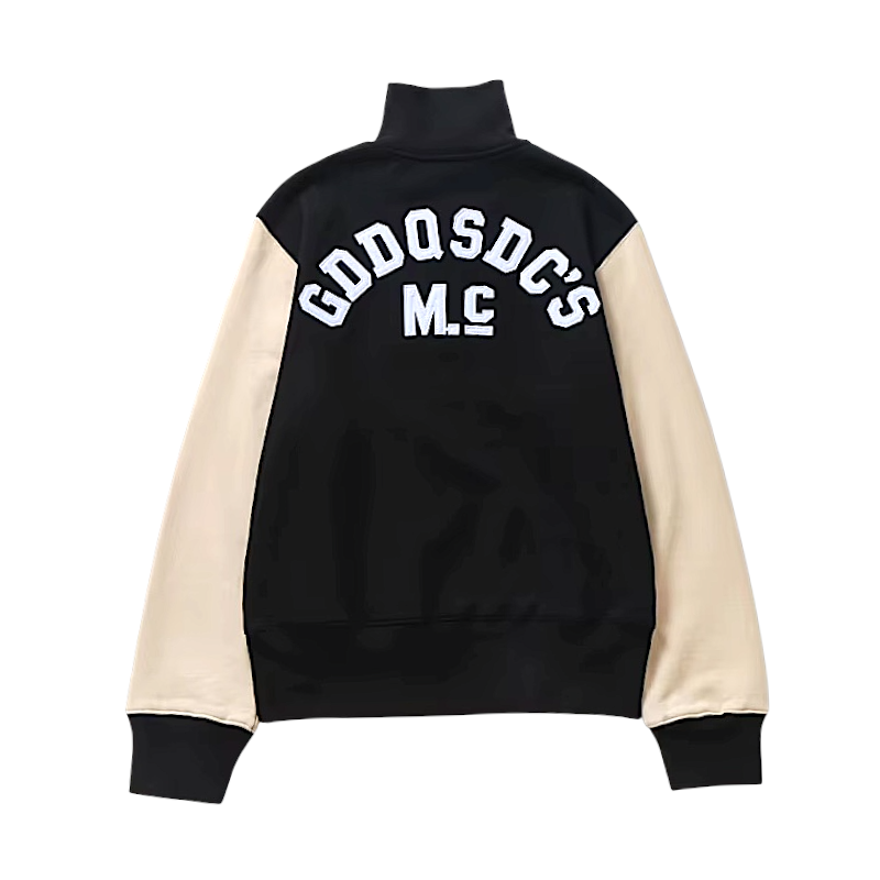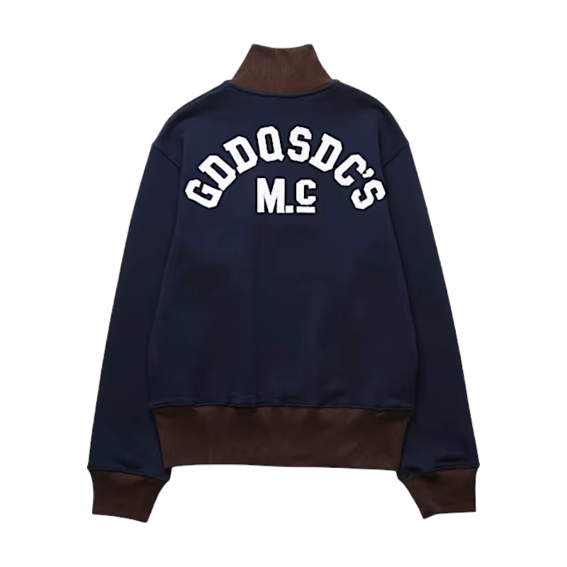 - Ribbed collar, cuffs and hem