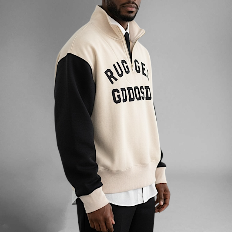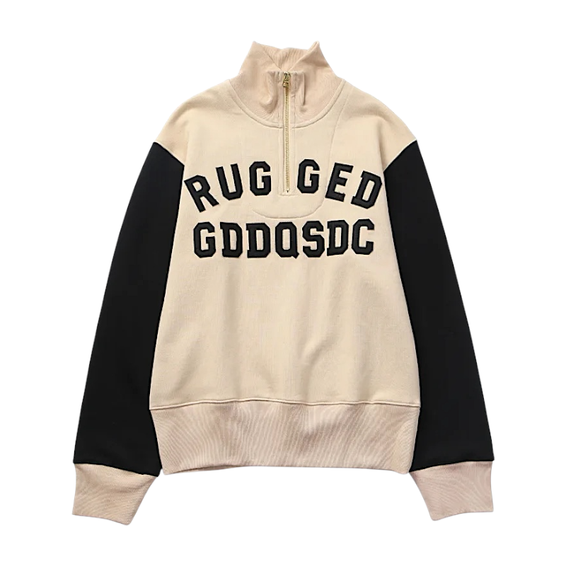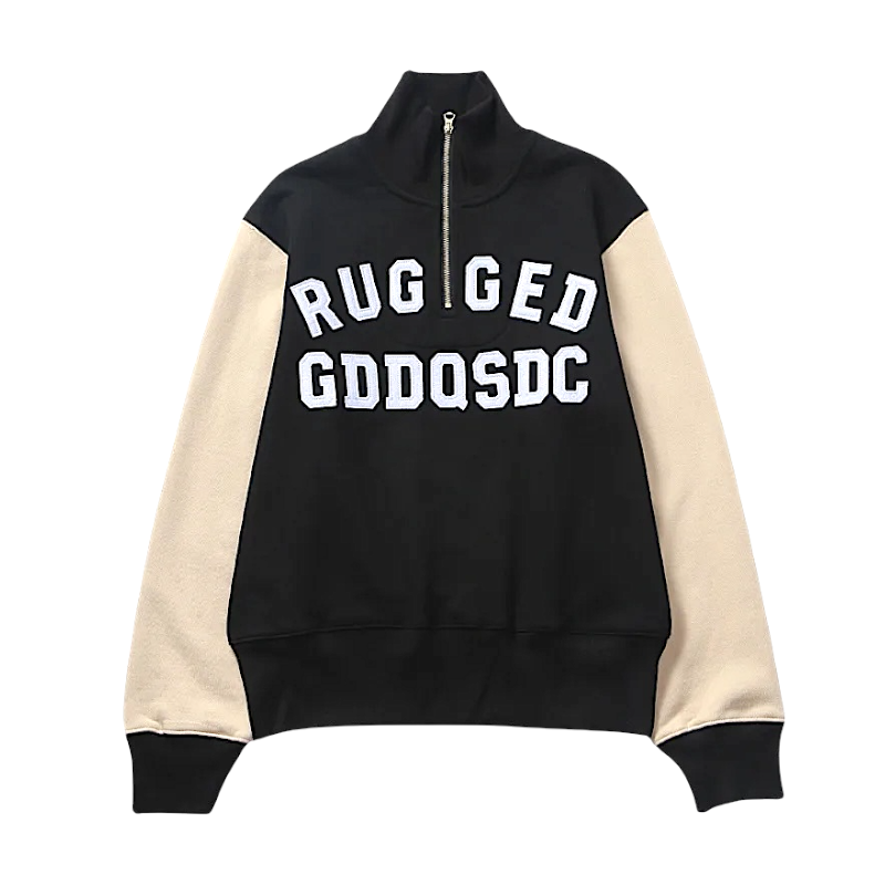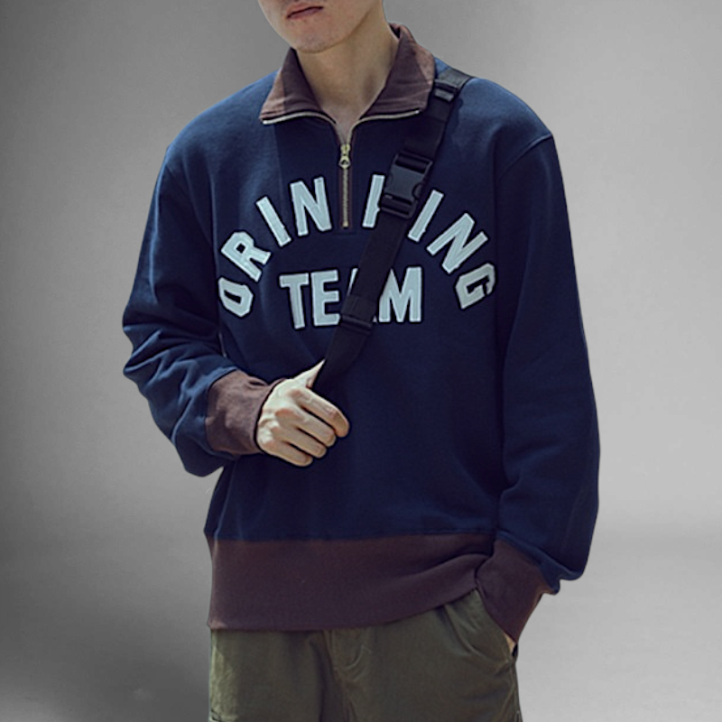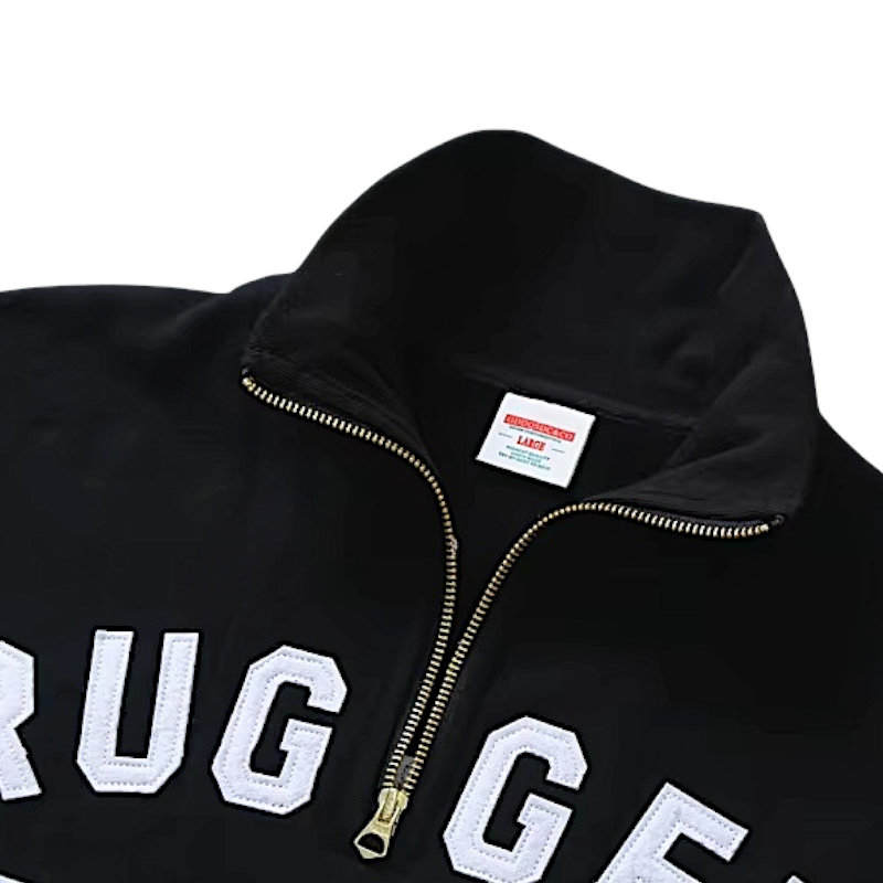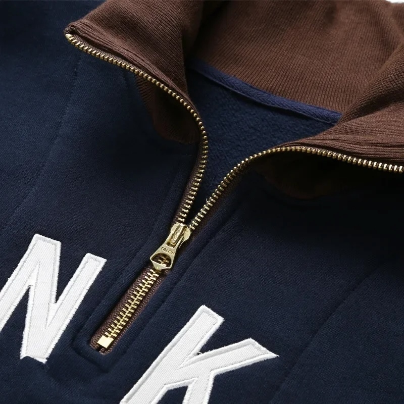 Half zip mock neck sweatshirt with embroidery