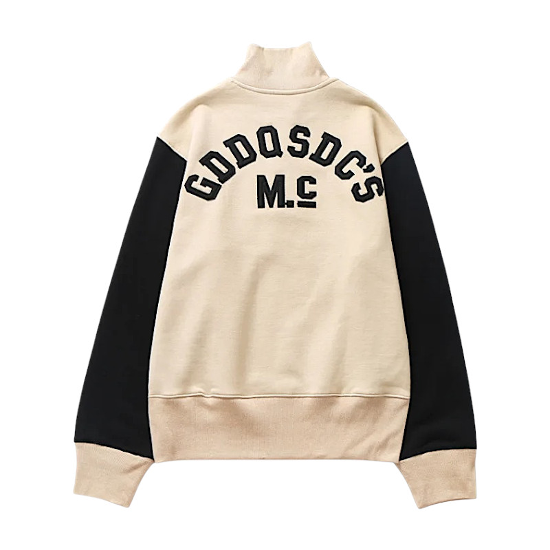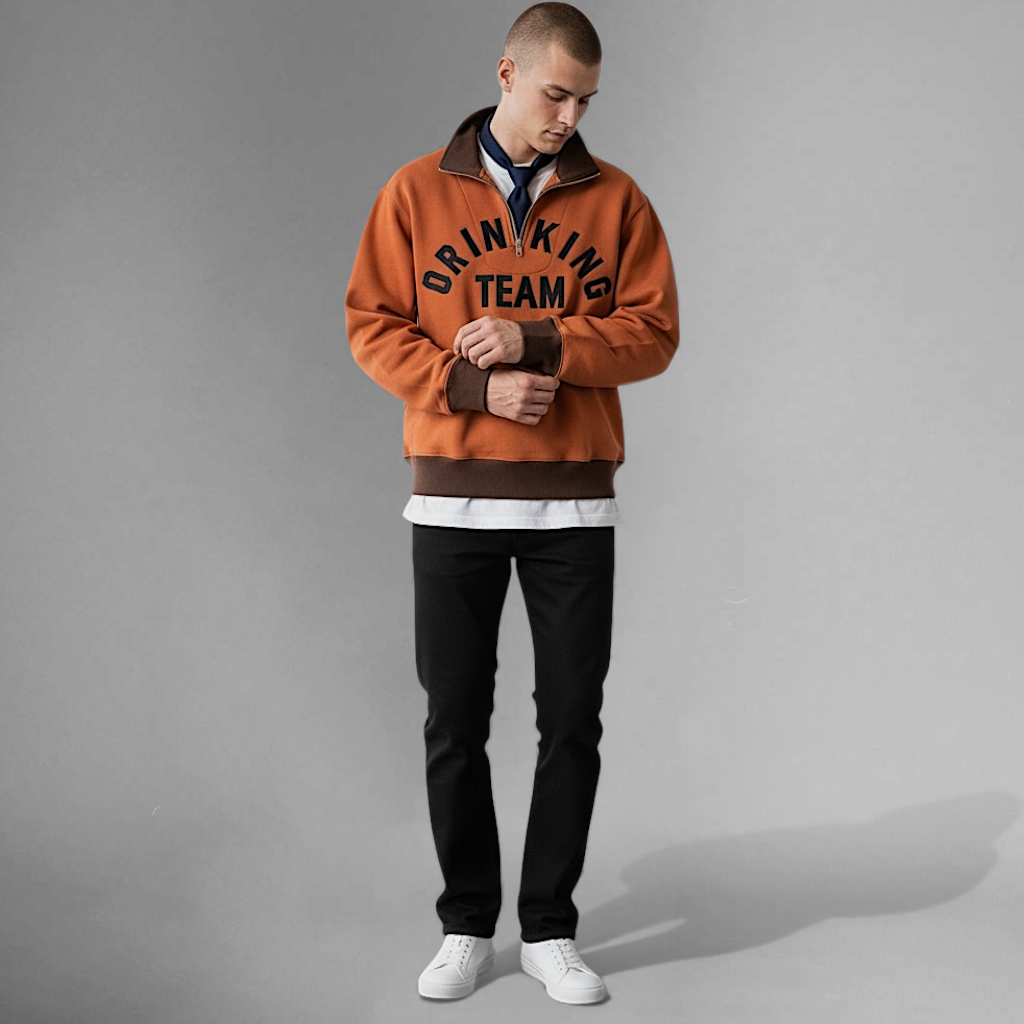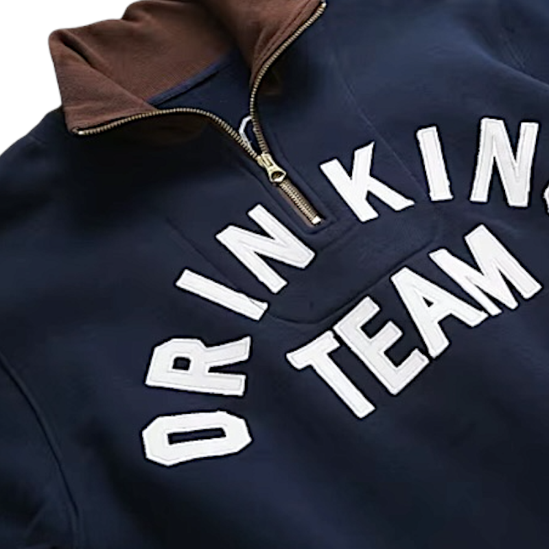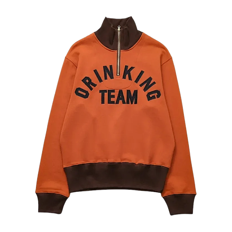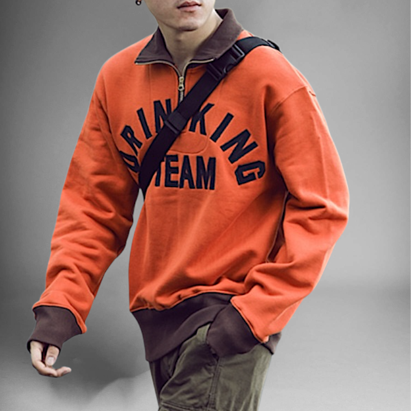 Half zip mock neck sweatshirt with embroidery