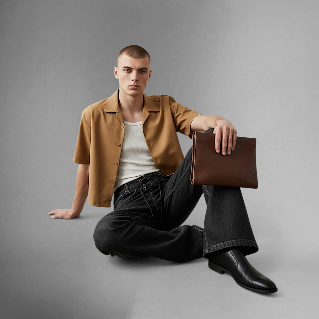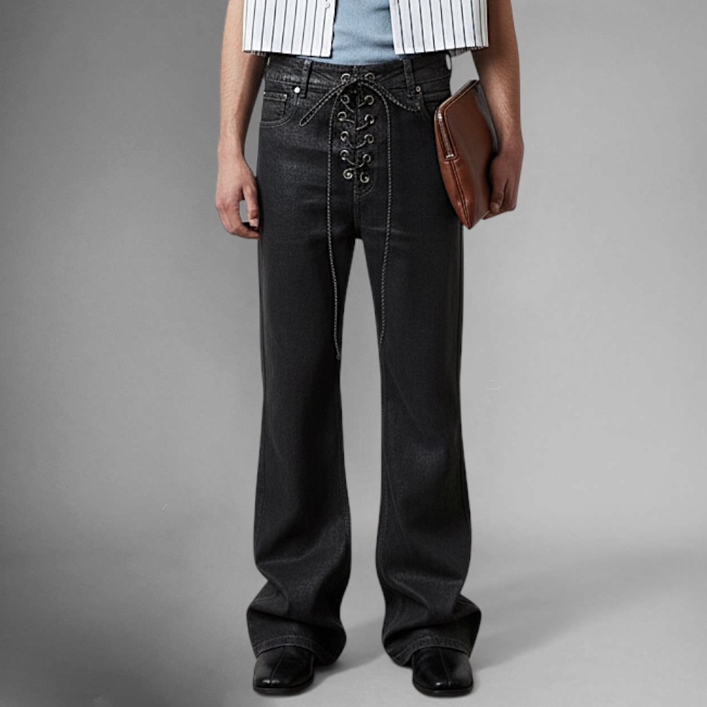 • Coated stretch denim finish with sheen