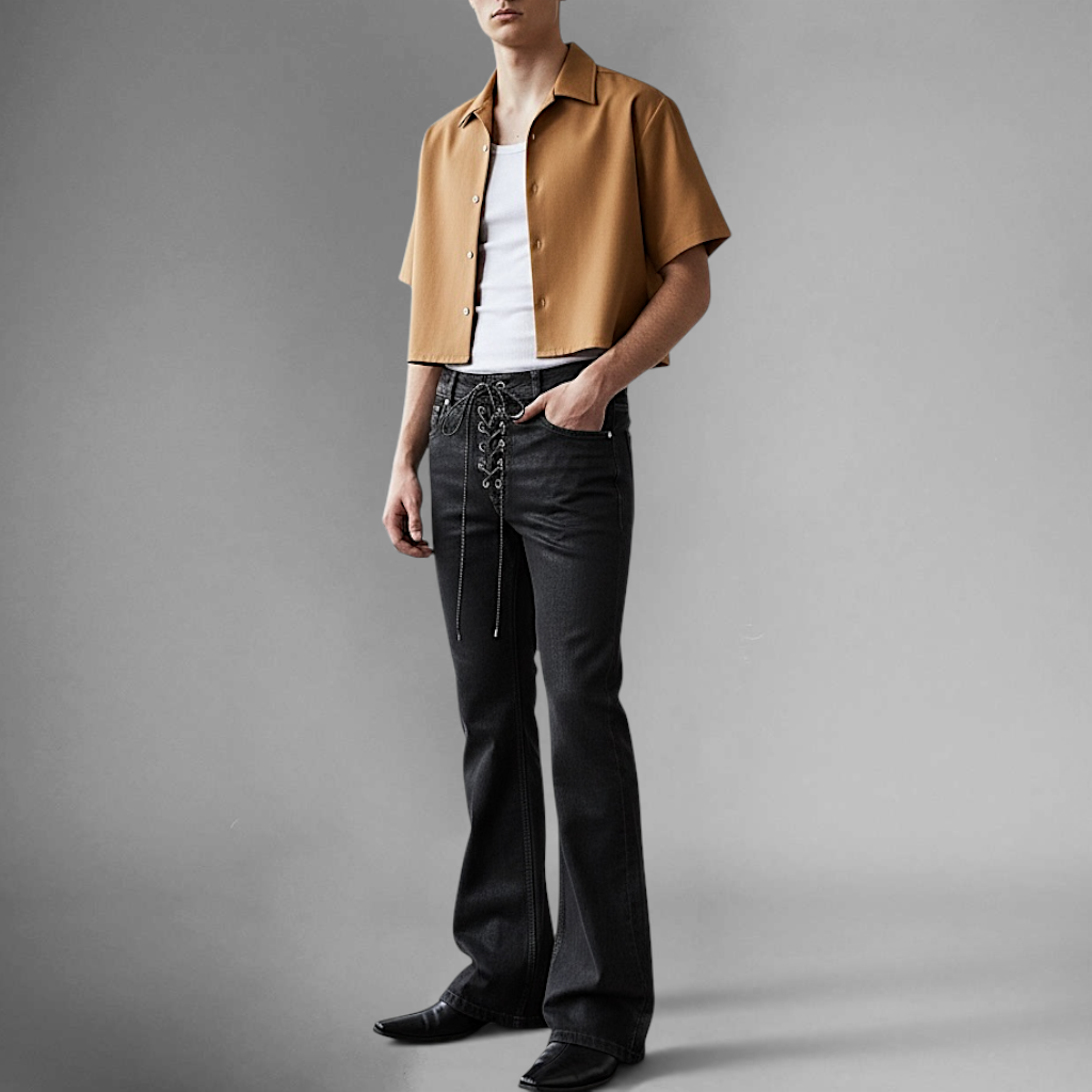 Drop crotch super flare lace front jean