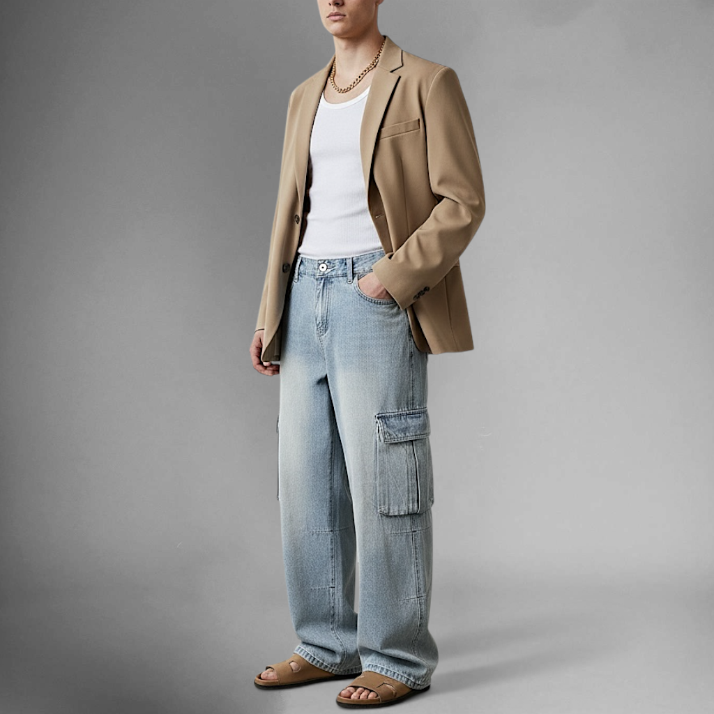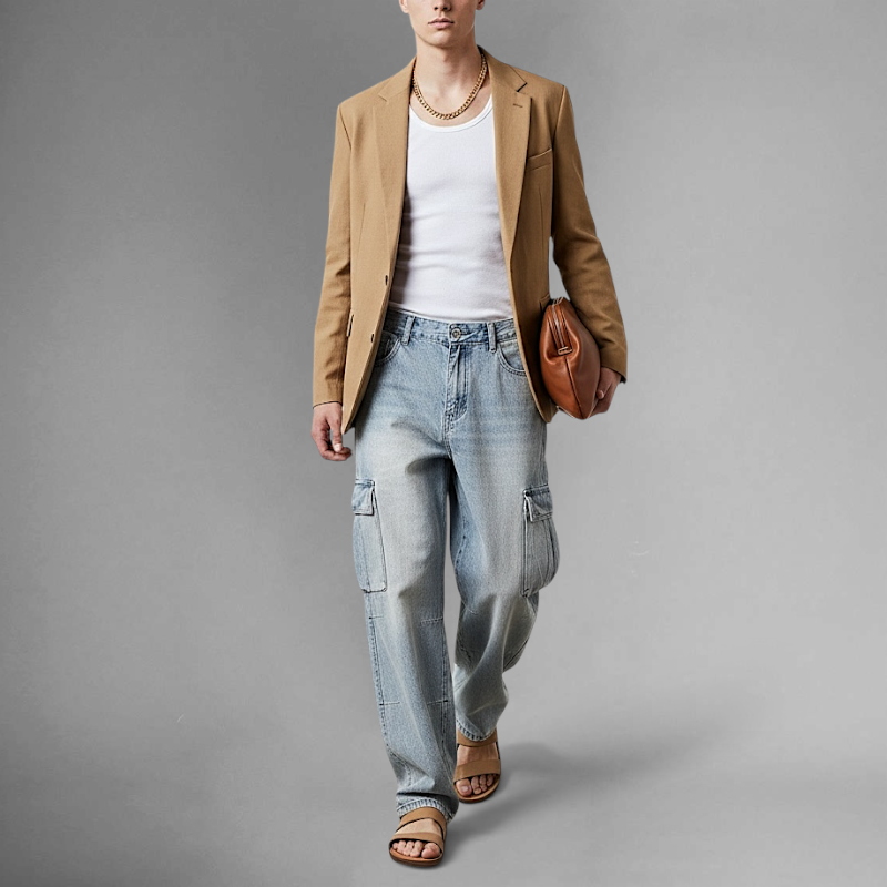 Model is 5'11" / 180cm, 175lb / 80kg. He wears size 34