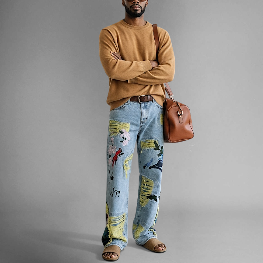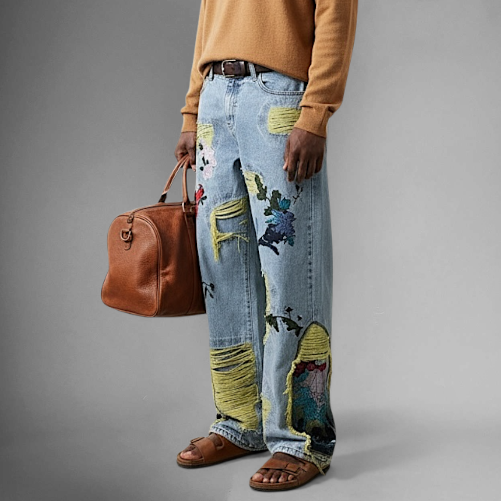 Multi-color embroidered baggy jean