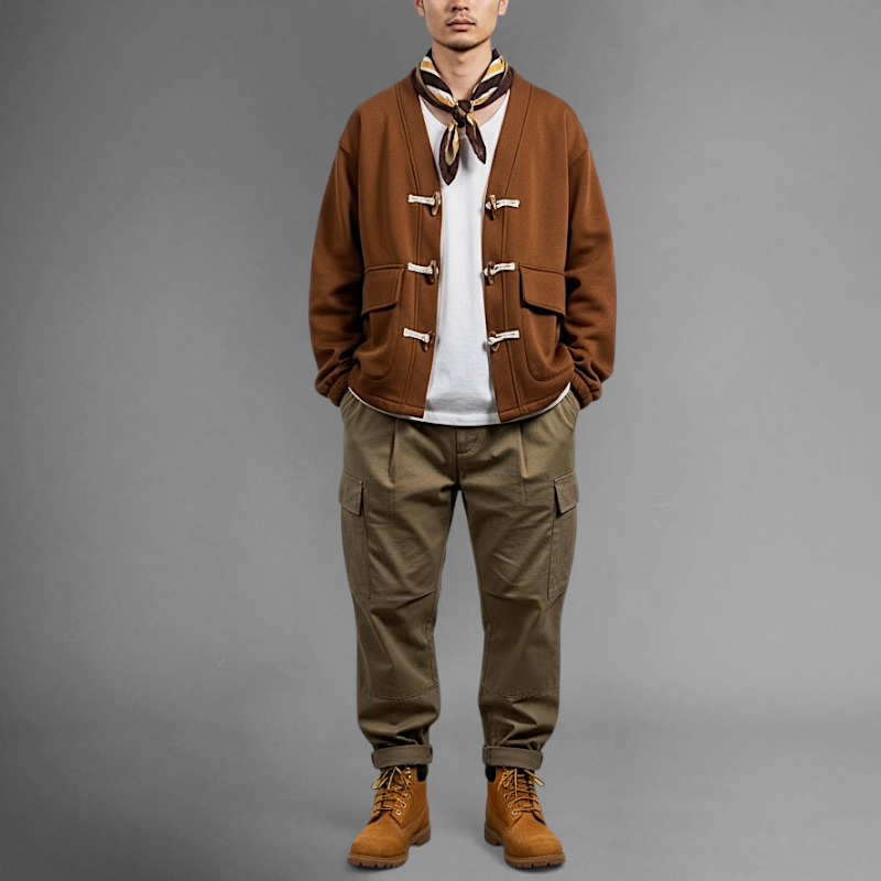 Brushed fleece cardigan with toggles