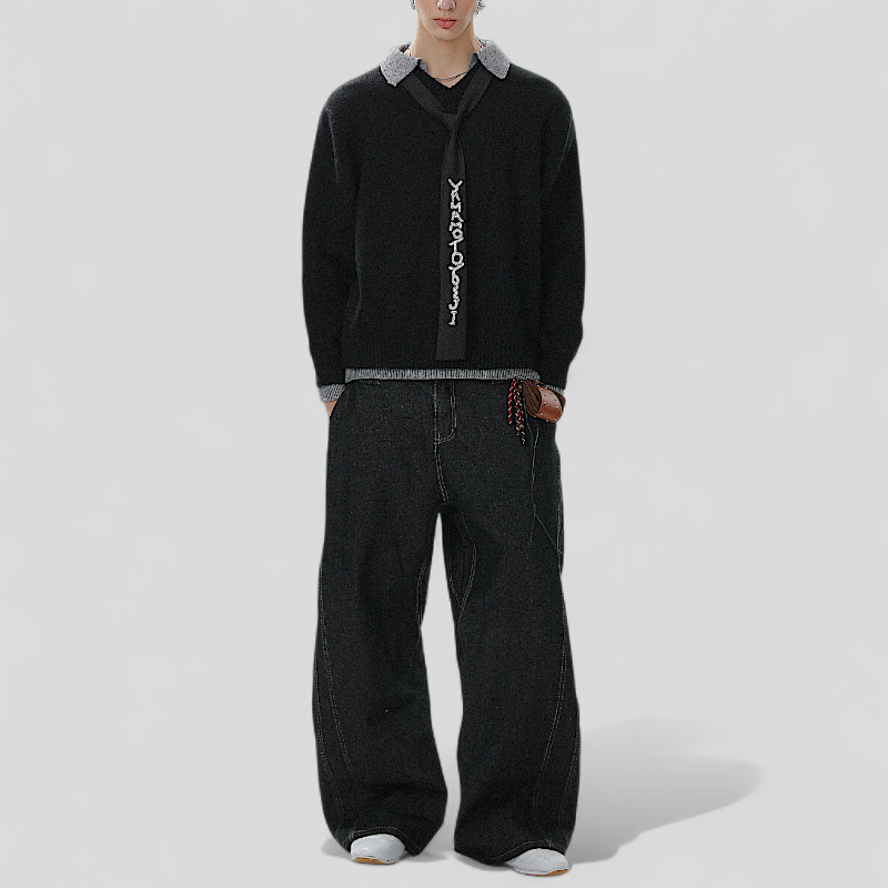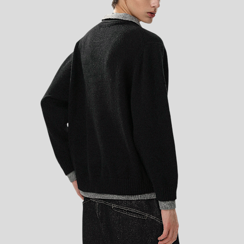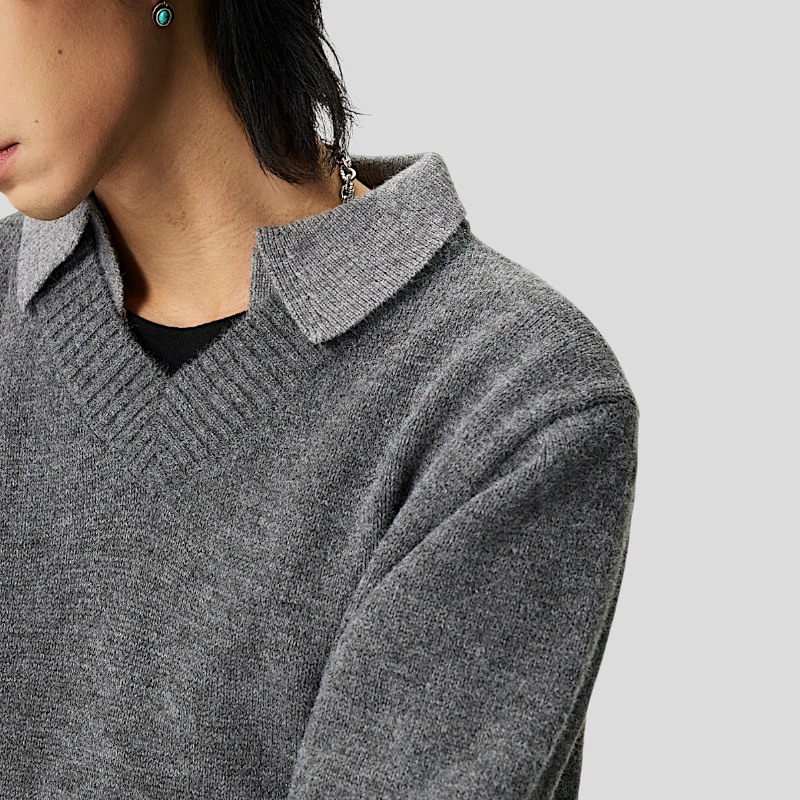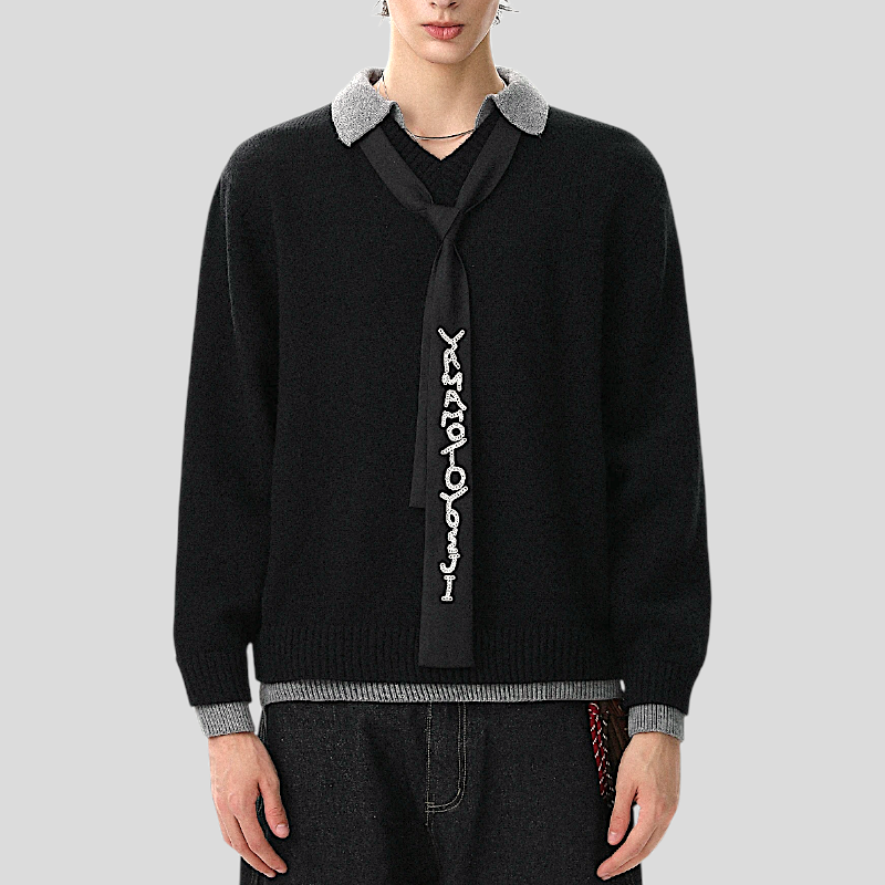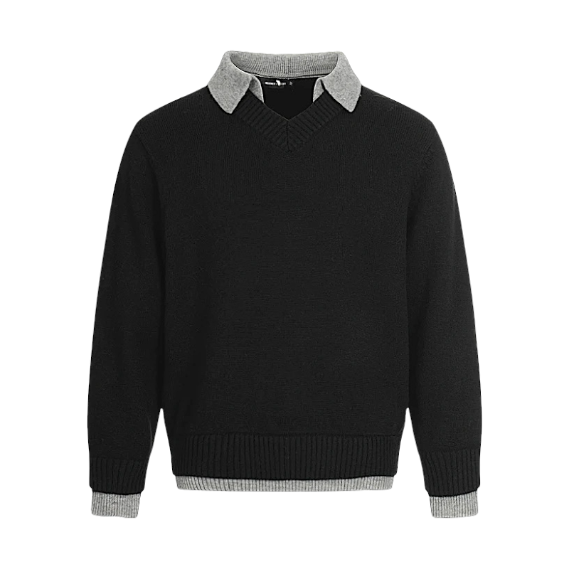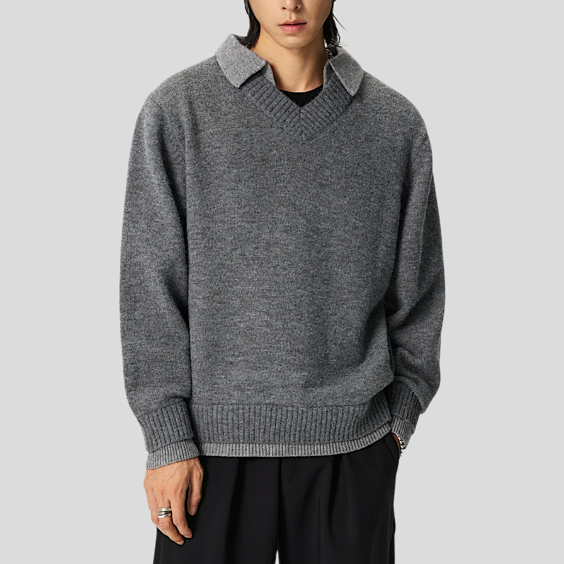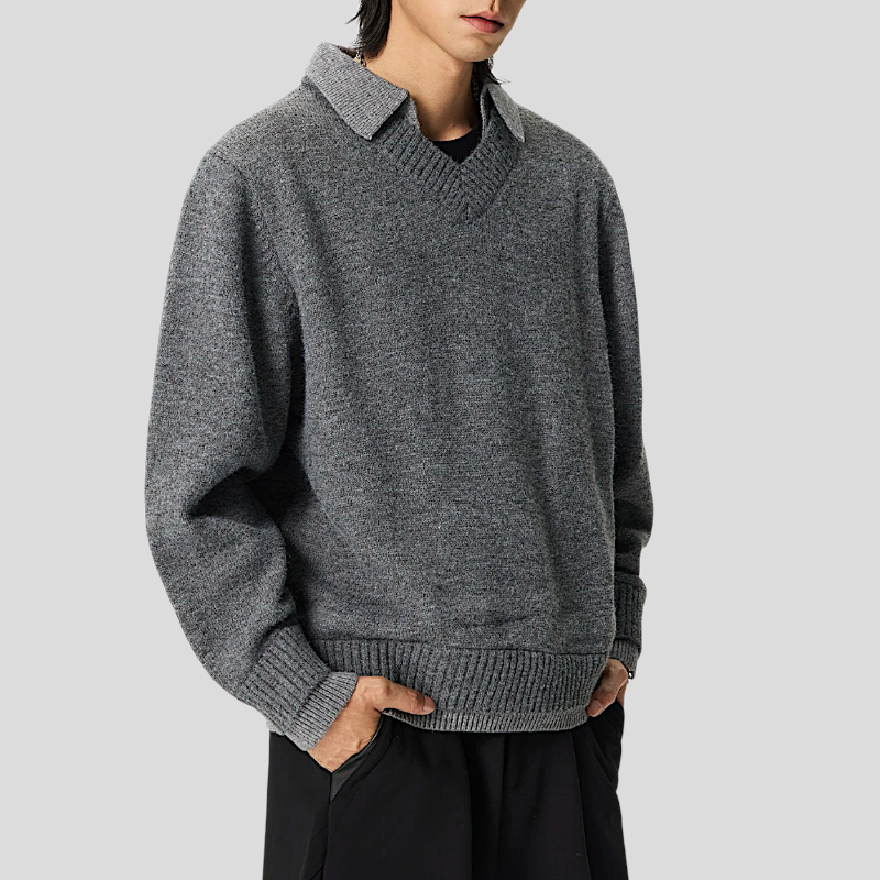 Faux double layer V neck sweater