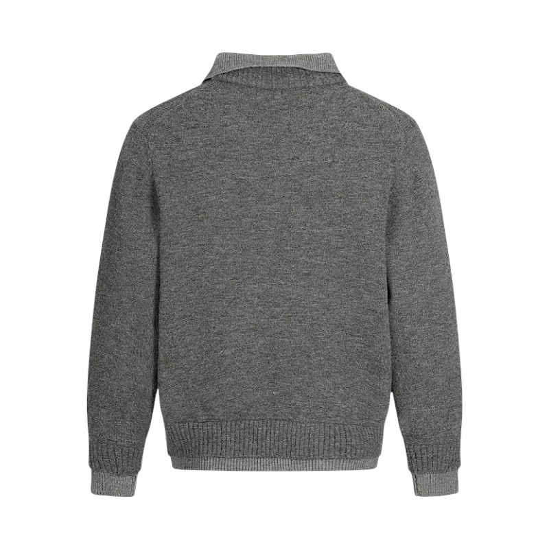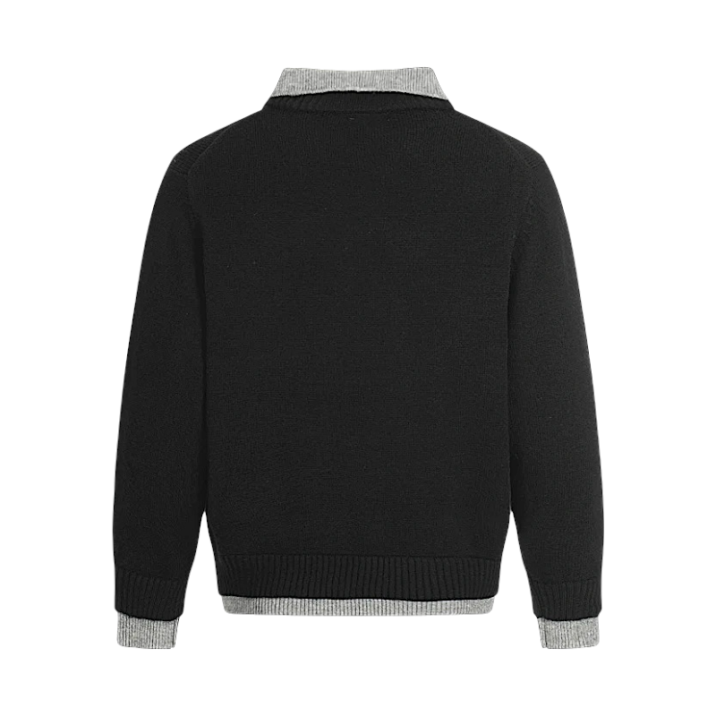 - Faux layer of collar, cuff and hem