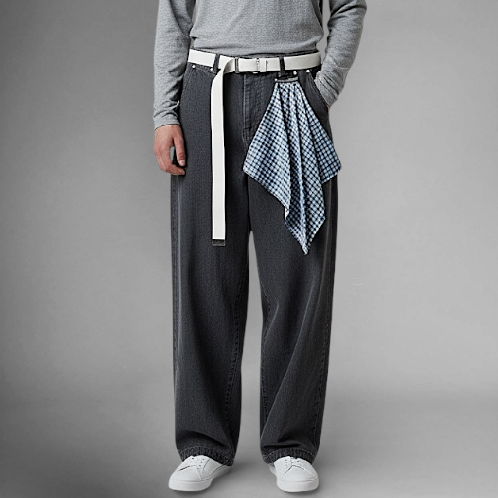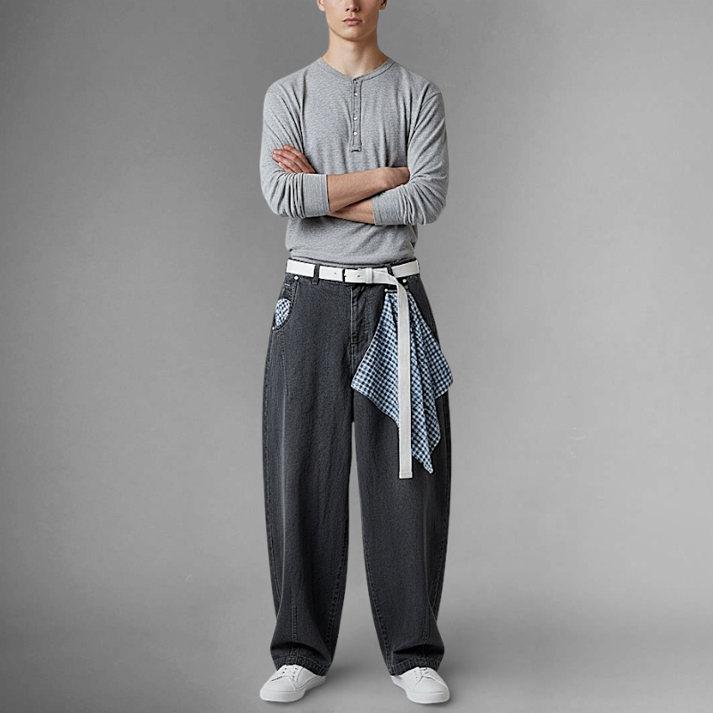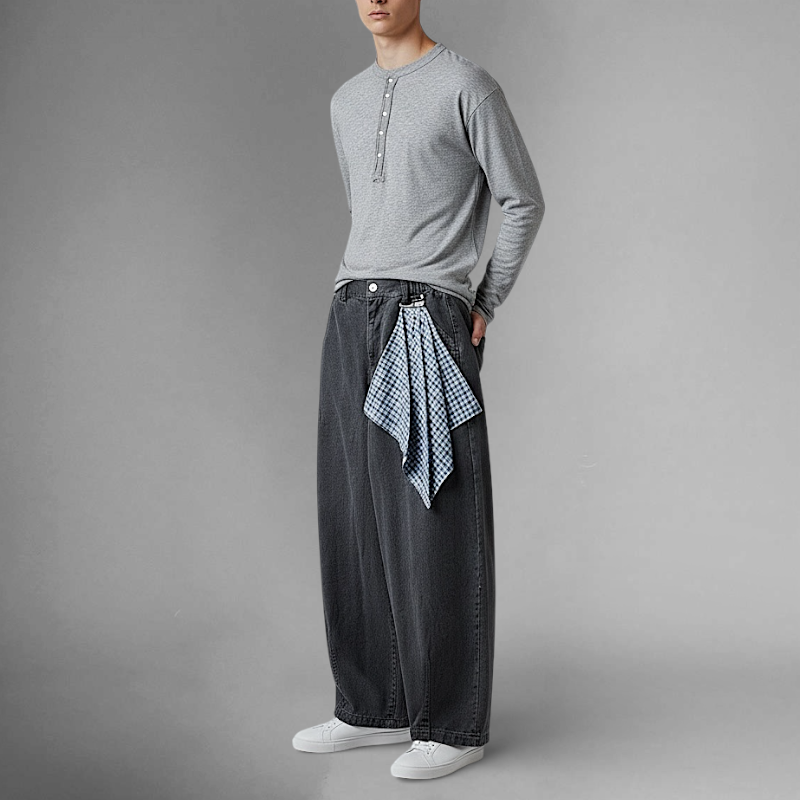 Baggy wide leg denim with scarf detail